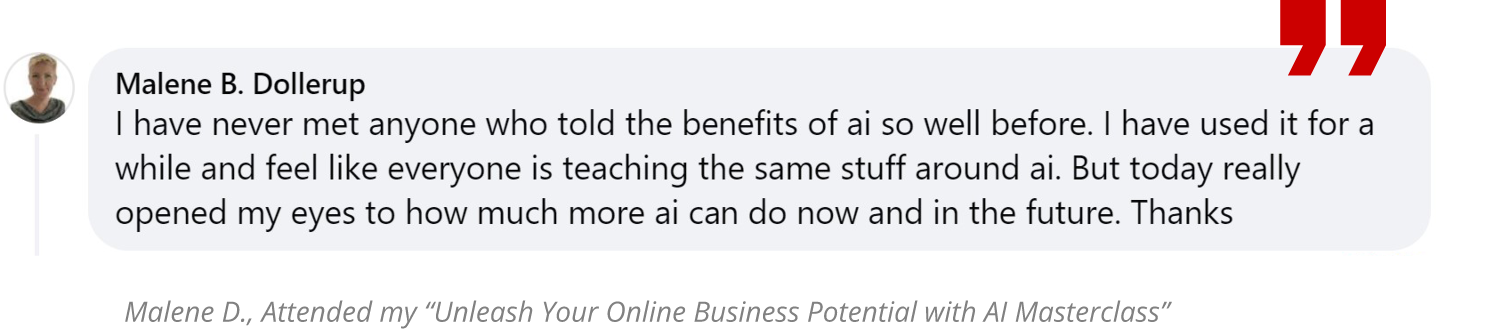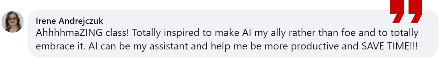 Absolutely! Many of our participants start feeling exactly the same way. By the end of the masterclass, they're excited to start using AI in their business.
